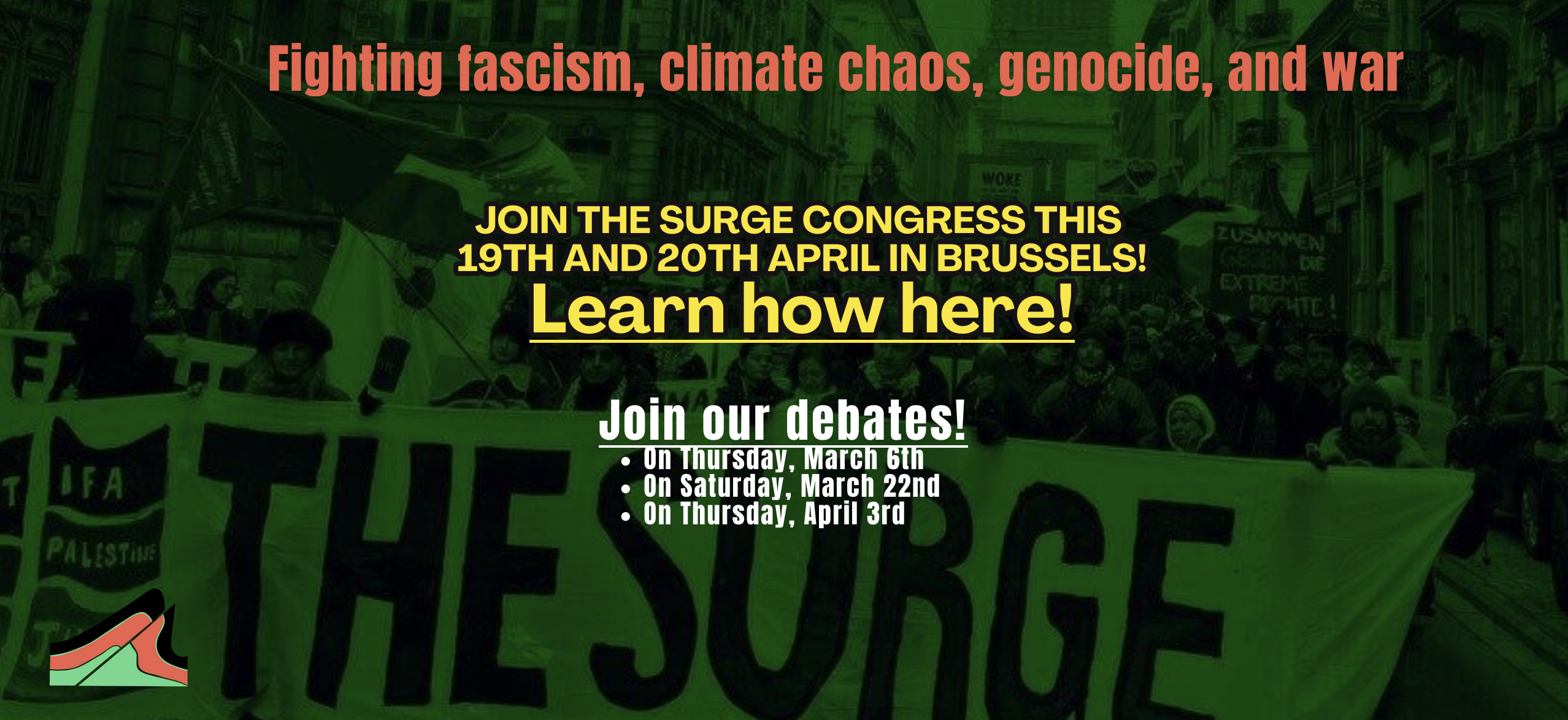 Een internationale campagne. Voor meer info: klik voor de website van The Surge. Je kan deelnemen door je in te schrijven via de website, of als je je meteen bij de Belgische delegatie wil aansluiten, contacteer HOTM via action@hotm.be. Voor aankondigingen van volgende acties of vergaderingen, volg de website of de instagram.
